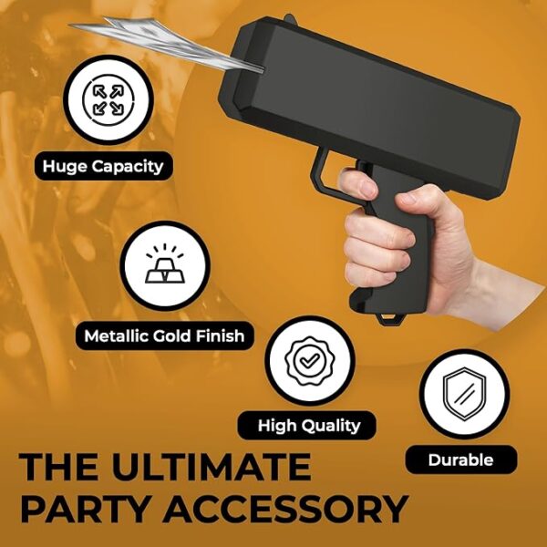 【 Make It Rain In Style 】: : Our money blower gun is designed to dispense dollar bills smoothly at a rapid rate to send them flying all around with style. The movie money spray gun will turn up the wow factor for any party no matter the occasion.